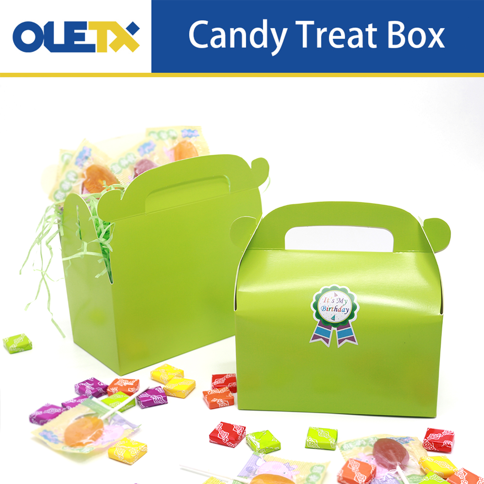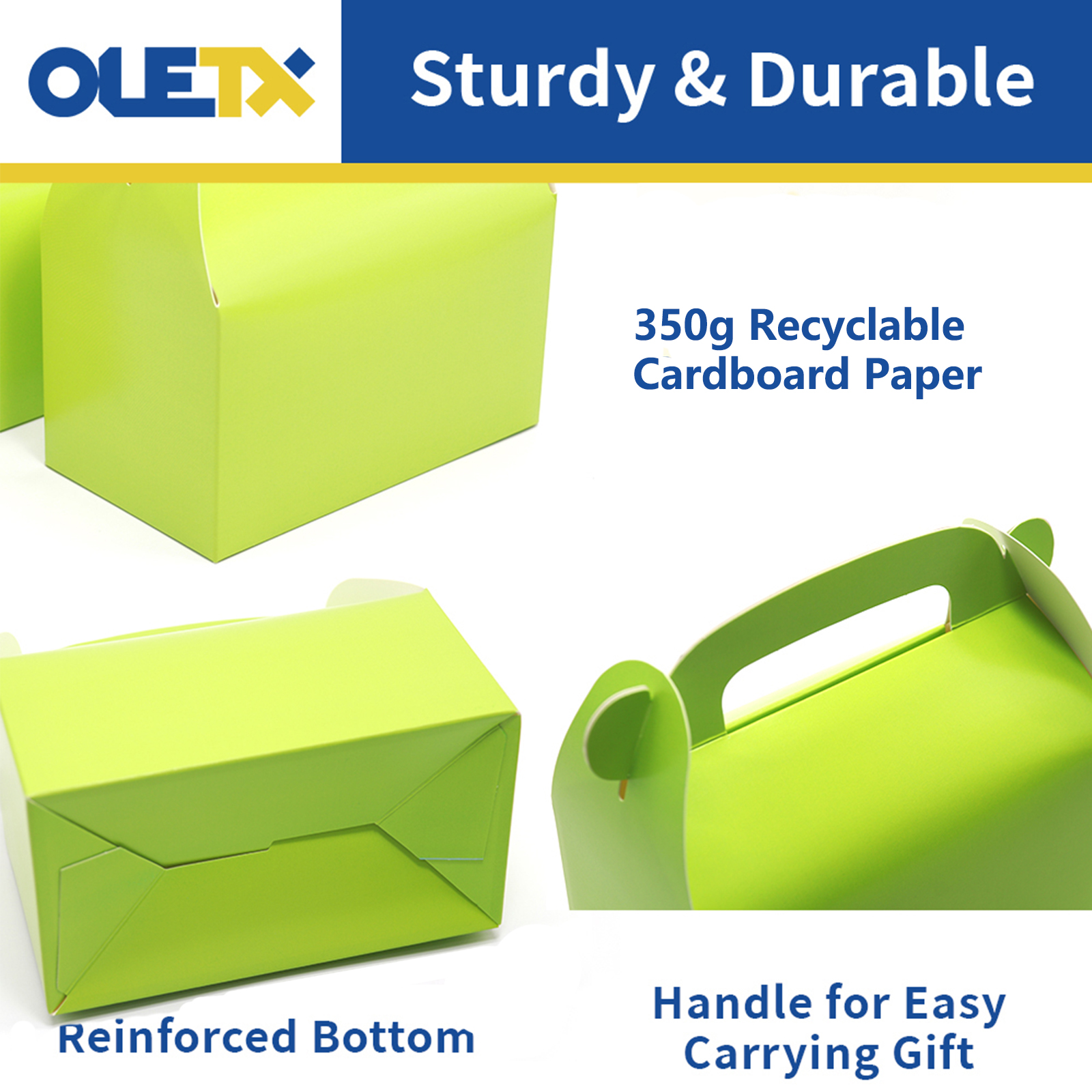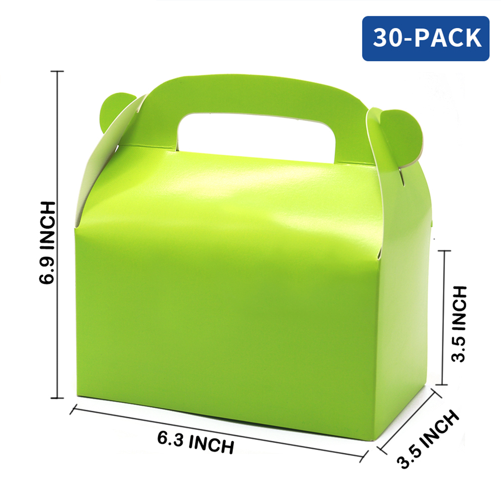 Brand:oletx Color:Green Size: 6.3''x6.3''x3.5'' Material: 270 Occasion: party;present NumberOfItems: 30 Description:Green Gable Paper Gift Boxes with Handles. Perfect for Party and Baby Girl Shower Decoration Supplies. |