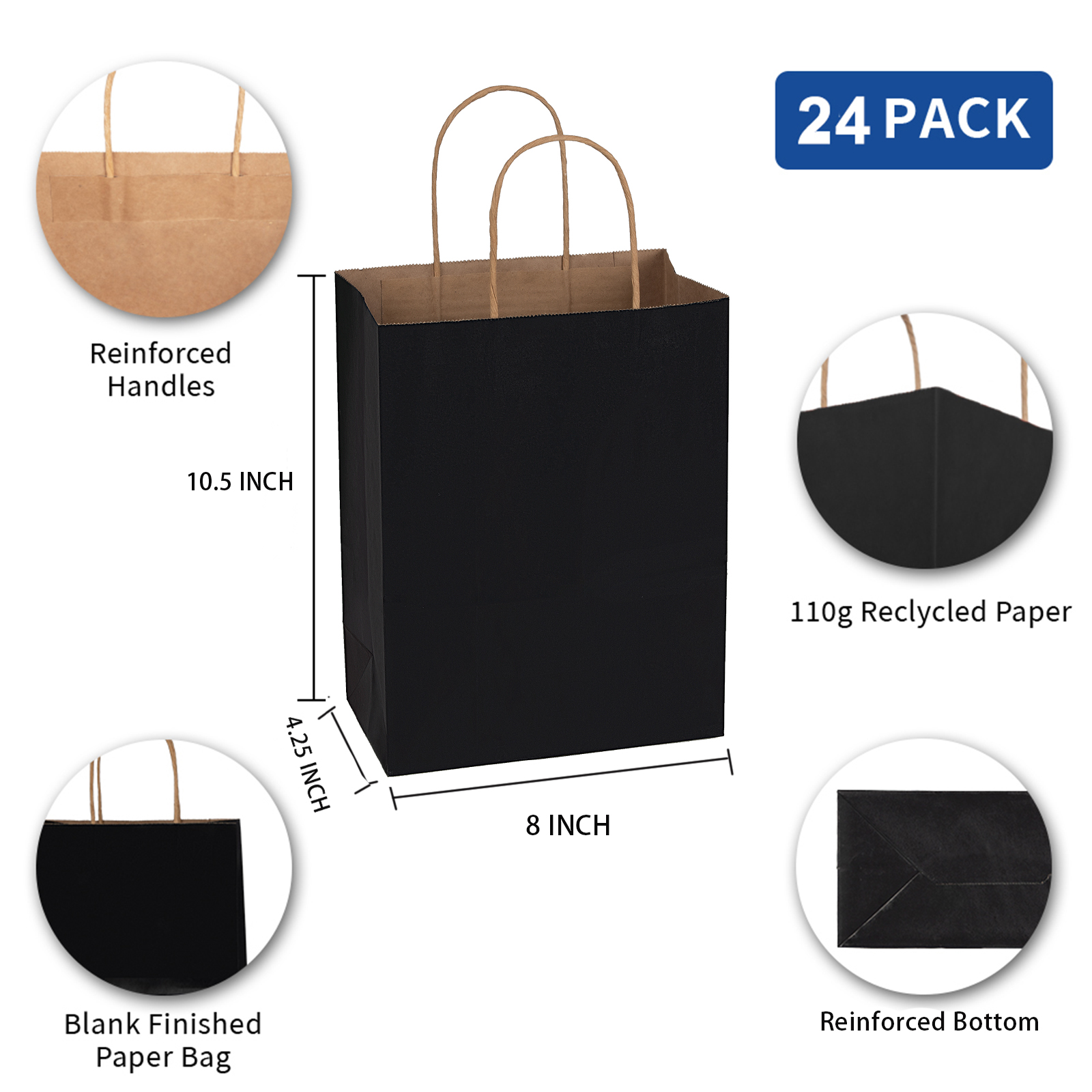Brand:oletx Color:Black Size: 8''x4.25''x10.5'' Material: 100g Occasion: party;present NumberOfItems: 24 Description:These gift bags with your own special style works well as your holiday gift bags, party bags, shopping bags, retail bags, mechandise bags and wedding welcome bags. |
